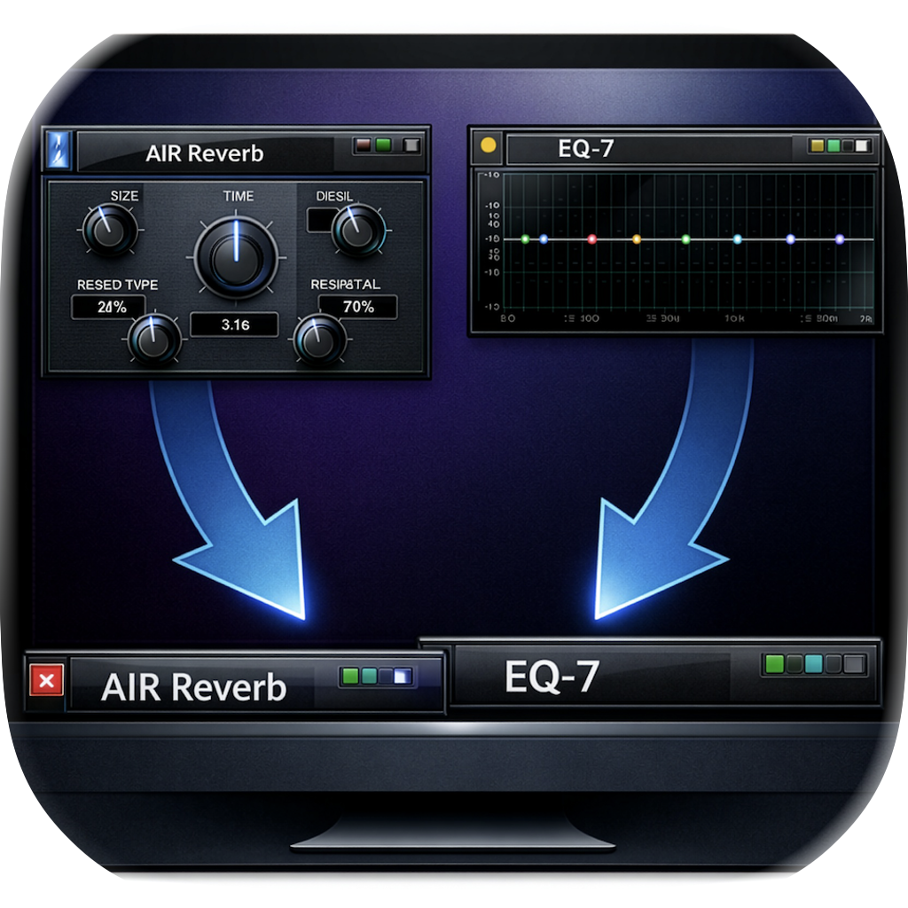 Plugin windows covering your valuable timeline workspace can all be hidden with this app. Using the “Hide All Floating Windows” feature in Pro Tools means those plugins cannot be accessed until they are brought back and visible. However, by using this app and moving the plugin windows to the bottom of the visible screen means the “Render” button can still be clicked by AppleScript.